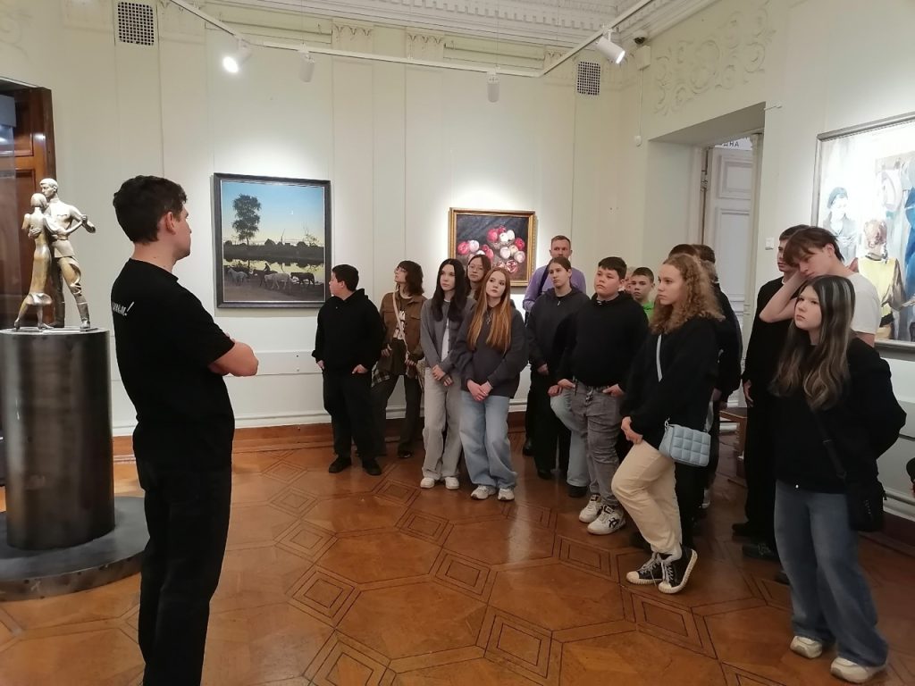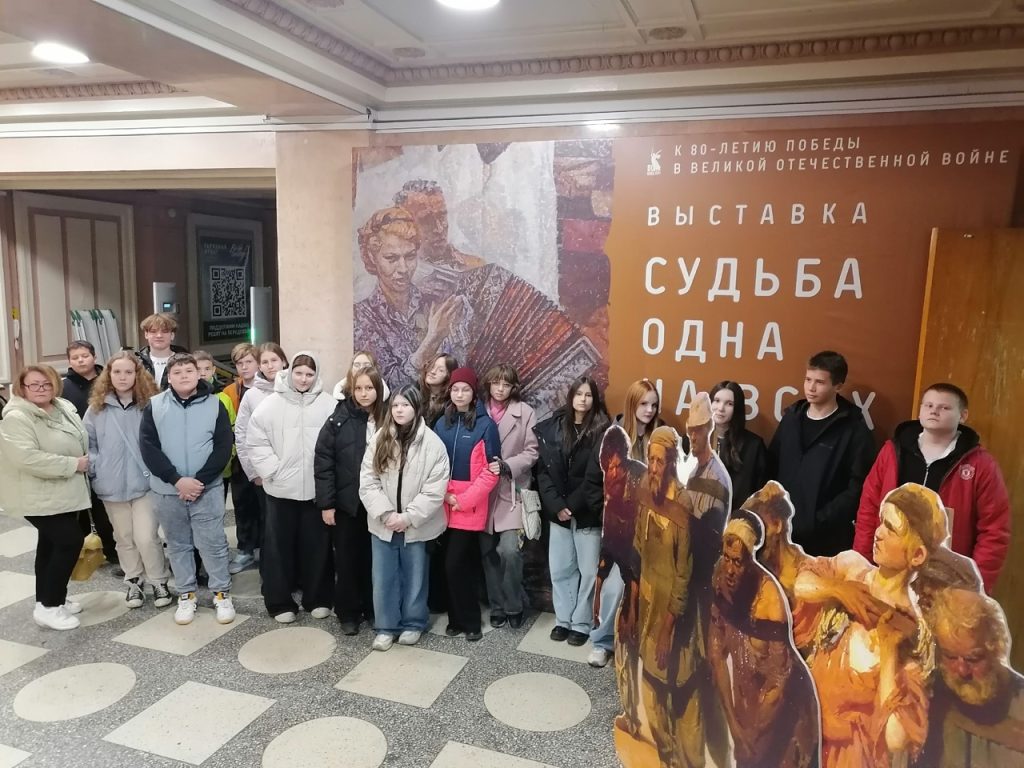 26 октября 2025 года в рамках реализации региональной музейной акции «Память поколений: музейные маршруты по Пушкинской карте», направленной на патриотическое воспитание молодежи через знакомство с историей Великой Отечественной войны, обучающиеся 8Б и 8В классов ГБОУ гимназии им. С.В.Байменова города Похвистнево посетили тематическую выставку «Судьба одна на всех. Защитникам Отечества посвящается», приуроченную к 80-летию Победы в Великой Отечественной войне, в Самарском областном художественном музее.