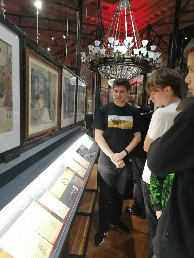 Ребята увидели картины, письма с фронта домой, военные фотографии, почтовые карточки, на которых солдаты могли черкнуть несколько строк родным в свободные минуты. В зале Войны находилась скульптура «Предвоенное танго», массивный постамент которой контрастировал с изяществом самой скульптуры. Глядя на мирно танцующую пару, нельзя было представить, что скоро начнется мировая трагедия.