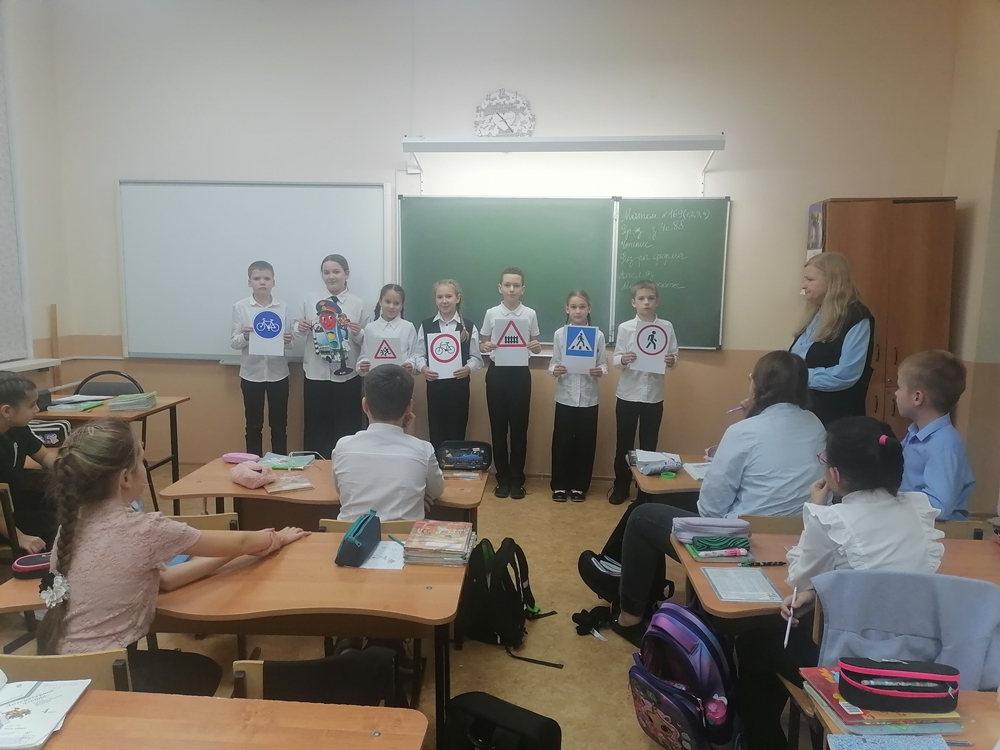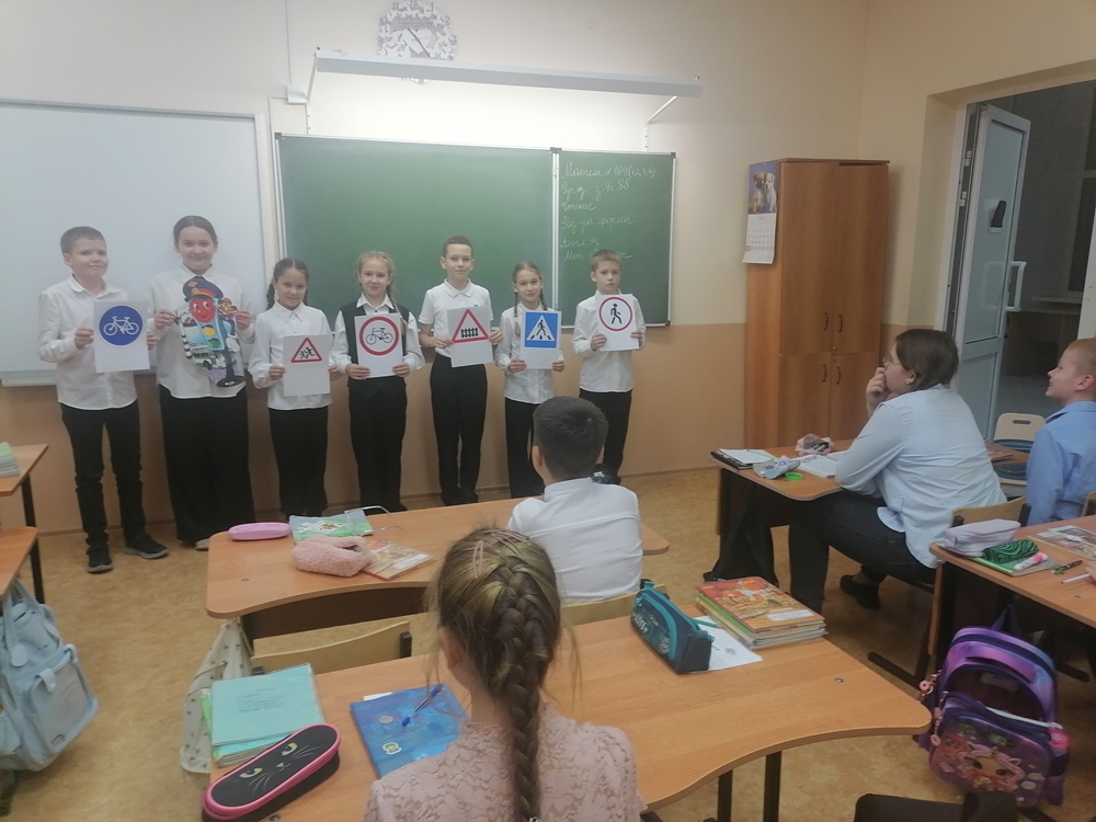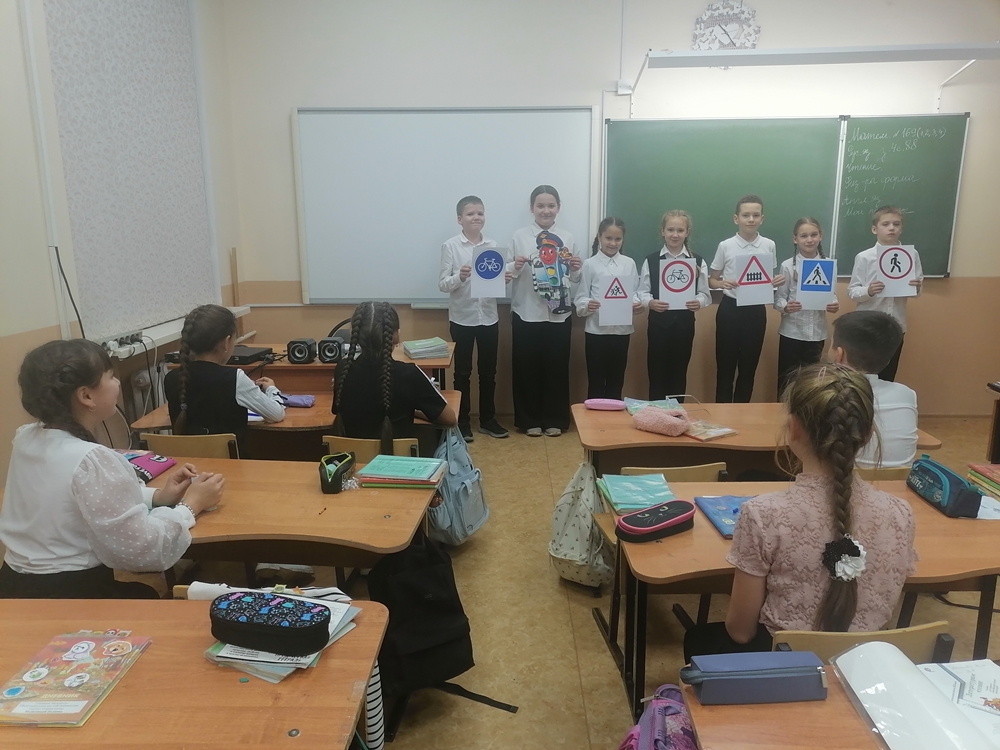 Отряды юных инспекторов дорожного движения «Дорожный патруль» (4А класс), «Зеленый свет» (4Б класс) и «Главная дорога» (4В класс) провели «Минутки безопасности» для учеников начальной школы.
